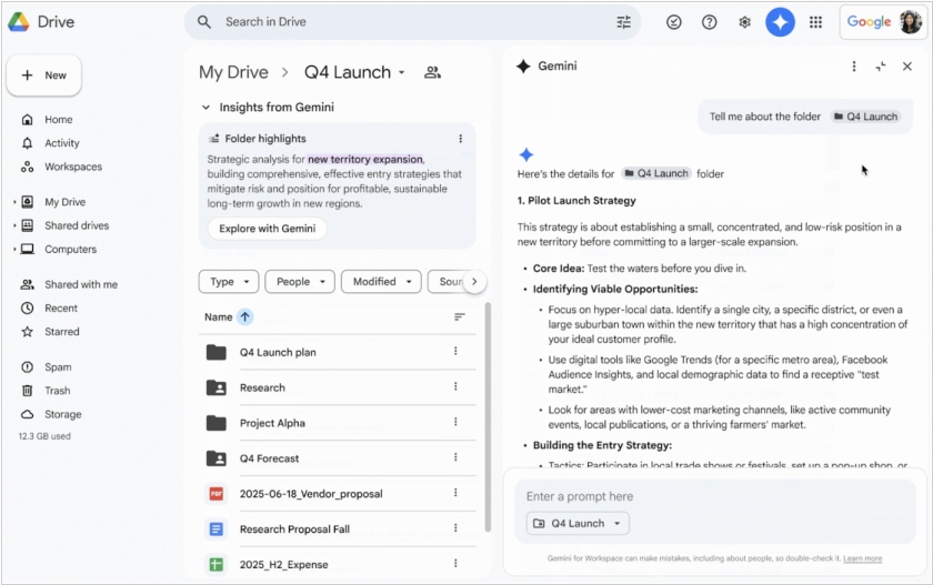 Google придумал как улучшить поиск по папкам в Google Drive за счет интеграции искусственного интеллекта Gemini. Теперь Gemini будет предварительно просматривать содержимое папки на Диске (если вы, конечно, разрешите) и предоставлять информацию о файлах в папке прямо в верхней части окна просмотра папок. Таким образом в результатах поиска вы будете видеть одну папку с пояснением вместо множества файлов в ней. Теоретически, это сэкономит время. Также, будет опция «Исследовать с Gemini», чтобы задать уточняющие вопросы по этой папке. Это полезное обновление доступно только платным пользователям Google Workspace или обладателям подписки Gemini Plus или Pro.