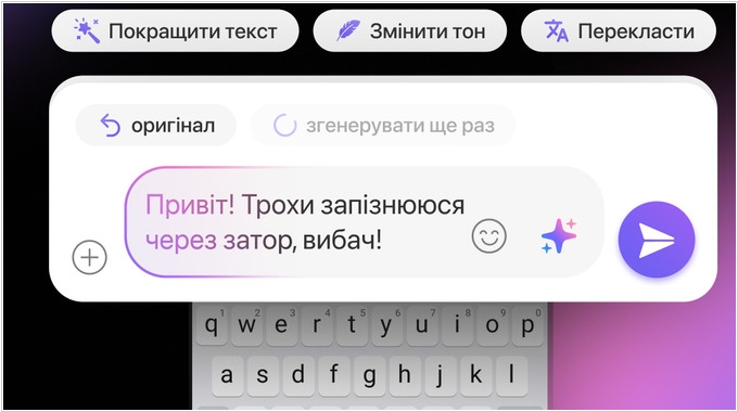 Viber добавил функции на основе AI, которые позволяют корректировать и переводить текст на другие языки непосредственно в поле ввода перед отправкой сообщения. Они призваны сделать ежедневное общение более четким и точным. С усовершенствованием сообщений пользователи смогут преобразовывать черновик, набранный на ходу, в структурированный и лаконичный текст в несколько кликов. Текст сообщения усовершенствуется с помощью моделей OpenAI. Viber утверждает что данные сообщения не используются для обучения моделей искусственному интеллекту и удаляются сразу после обработки. Ранее Viber также добавил AI-функцию краткого изложения чата.