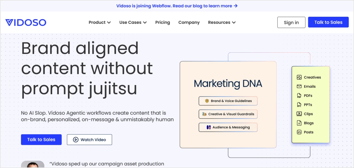 Компания Webflow, разрабатывающая платформу для создания и размещения веб-сайтов, приобретает AI сервис генерации контента Vidoso, чтобы расширить свой набор маркетинговых инструментов. Vidoso использует LLM модели, чтобы помочь организациям создавать маркетинговые материалы, такие как изображения, презентации, видеоролики, посты в блогах и контент для социальных сетей. Например, платформа может превратить выступление на конференции или панельную дискуссию в короткие видеоролики или посты в блогах. Благодаря новому приобретению, Webflow сможет помочь своим пользователям объединить такие функции, как брендинг, генерация спроса, продуктовый маркетинг и контент.