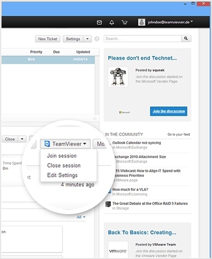 Remote support tool TeamViewer is now integrated with IT Help Desk service combined with IT community Spiceworks. From now users (support agents) are able to create and join support sessions directly from the Spiceworks interface. Customers can connect and give access with a singe click. An overview of current Spiceworks sessions is available in the TeamViewer Management Console and TeamViewer client. Connection reports are added to the corresponding ticket in Spiceworks.