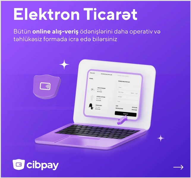 С помощью сервиса электронной коммерции СİB Pay любой налогоплательщик, занимающийся коммерческой деятельностью в Азербайджане может быстро и безопасно принимать платежи на своем веб-сайте или и в мобильном приложении. После заключения договора вам будет предоставлен онлайн Личный Кабинет для отслеживания и аналитика всех платежей в единой панели. Вы можете принимать оплату картами Visa и MasterCard, а также через крупнейшие сети платежных терминалов. Кроме того, можно отправлять клиентам ссылки с QR кодом, (отсканировав QR-код смартфоном, клиент перейдет на страницу оплаты). Также, вы можете подключить сервис Tap to Phone - это мобильный POS-терминал, который позволяет получать безналичные платежи с любого мобильного устройства Android, поддерживающего NFC. Вывод средств осуществляется на банковскую карту.