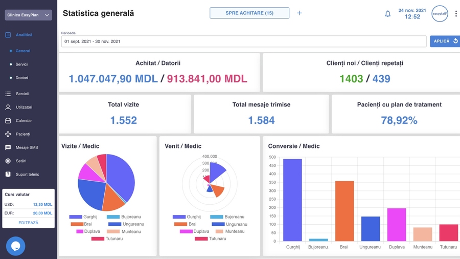 Молдавский сервис для управления медицинской клиникой. Объединяет всю работу клиники в единую систему управления, единый рабочий процесс, чтобы команды работали эффективнее. Есть мобильная версия.