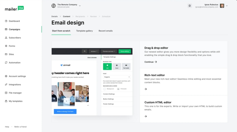 Сервис email-маркетинга, позволяющий автоматизировать email-кампании, создавать лендинги, формы регистрации и простые веб-сайты. Предоставляет библиотеку шаблонов, где вы можете выбрать дизайн, соответствующий потребностям вашего бизнеса, и адаптировать его под себя. Встроенный редактор с функцией перетаскивания делает настройку шаблонов невероятно простой для любого пользователя. Интегрируется со Stripe, Make, Zapier, Shopify, WordPress, WooCommerce.