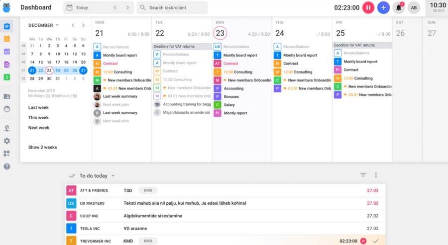 Программное обеспечение для управления бухгалтерской практикой, автоматизирующее рабочие процессы и коммуникацию. Позволяет отслеживать статус работы ваших клиентов и кто какую задачу выполняет. Больше никогда не пропустите сроки выполнения задач, даже если заменяете коллегу. Автоматизирует сбор данных и выставление счетов. Аналитические данные на основе учета рабочего времени.