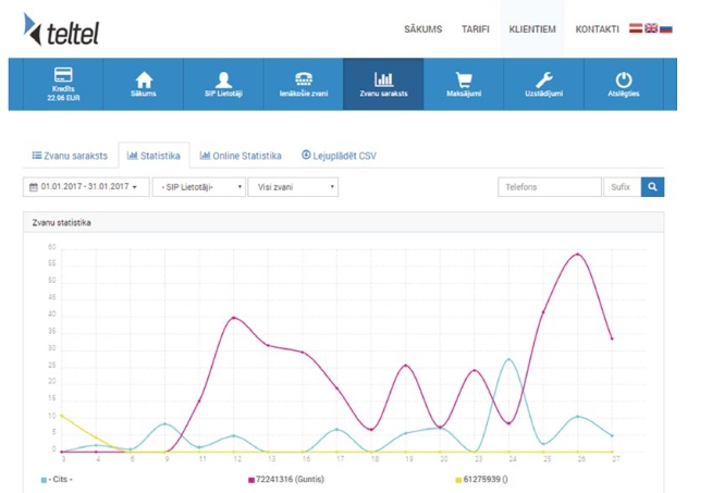Латвийская интеллектуальная АТС. Чтобы принимать звонки, Вы можете приобрести любой латвийский или зарубежный номер и переадресовать его на АТС или мобильный телефон. Запись звонков и отчеты. API Интеграция в Вашу систему.