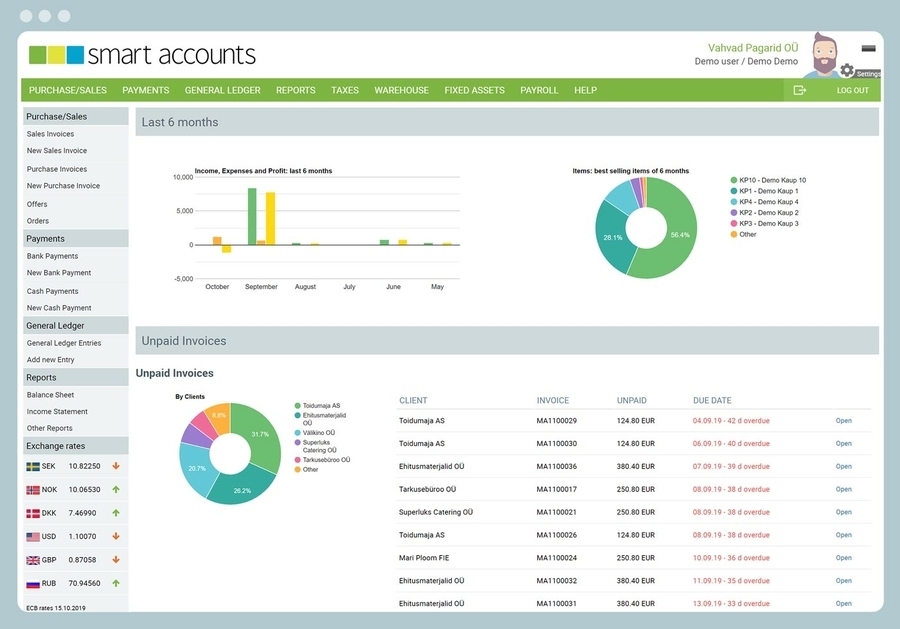 Эстонская онлайн бухгалтерия SmartAccounts теперь предлагает два тарифных плана – Starter и Pro. План Starter предназначен для начинающих компаний, а план Pro – для активных компаний с более высокими требованиями к функциональности программного обеспечения. План Pro включает в себя несколько улучшений, которые помогают как предпринимателям, так и бухгалтерам оптимизировать свои ежедневные рабочие процессы. В частности, в ней есть автоматические напоминания о неоплаченных счетах, удобный предварительный просмотр счетов-фактур на покупку, распределение расходов (которая позволяет автоматически создавать записи распределения в главной книге). Также, в тарифном плане Pro вы можете загружать файлы размером до 10 МБ на страницу «Ожидающие покупки» и легко копировать информацию из документа при вводе данных. Кроме того, тарифный план Pro включает доступ к API, позволяющий подключить SmartAccounts к решению для управления затратами.