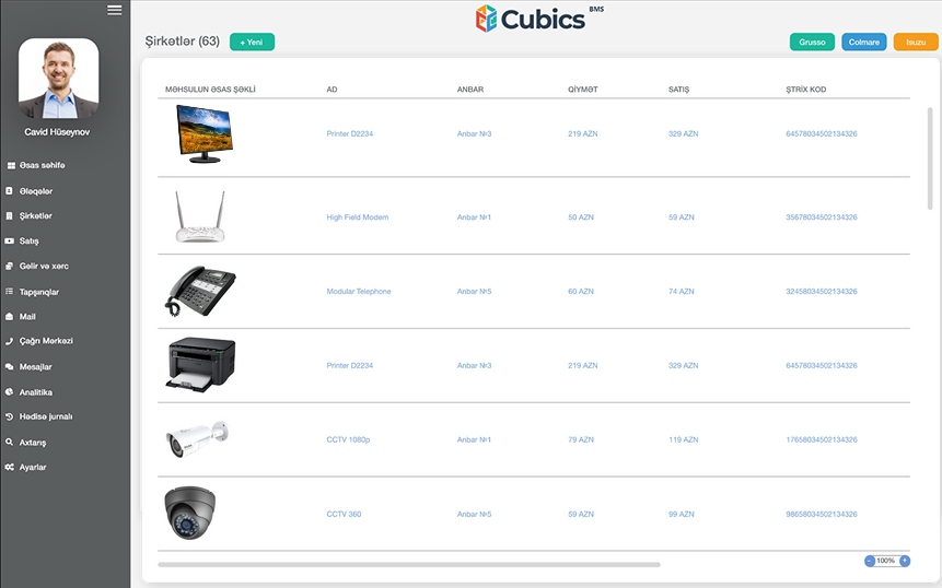 Cubics - азербайджанская система учета и управления предприятием (ERP), позволяющая управлять всеми бизнес-процессами из одного окна. Основное преимущество этой системы заключается в возможности кастомизации - она может быть адаптирована для любых бизнес-процессов. Но и исходный функционал - довольно мощный. В ней есть CRM с клиентской базой и управлением продажами, таск-трекер с управлением проектами и отслеживанием дедлайнов, финансовый модуль с отчетами и аналитикой, формирование отчетности для налоговых органов, система электронного документооборота (СЭД), рассылки SMS и Email, колл-центр с автоматизацией звонков, HRM модуль для управления сотрудниками, система складского учета. Торговые компании могут также подключить POC систему Cubics POS, совместимую со сканерами штрихкодов и принтерами чеков.