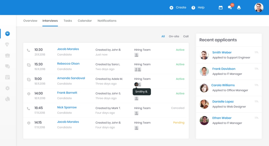 Сервис для привлечения талантов. Предоставляет мощные инструменты для оптимизации управления талантами, объединенные в интуитивно понятный интерфейс, удобный как для рекрутеров, так и для кандидатов. Автоматизирует создание и распространение объявлений о вакансиях на популярных сайтах по поиску работы и в социальных сетях, создание высококачественной базы данных кандидатов.